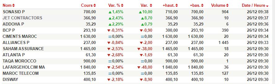 La séance du mardi 26 décembre a démarré sur une trajectoire légèrement baissière.