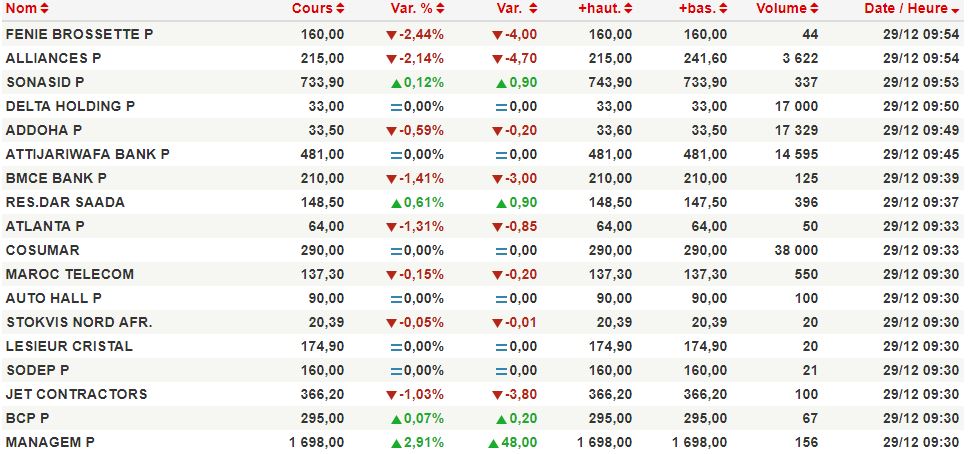 A noter que Cosumar, Delta holding et Attijariwafa Bank sont en équilibre après l’échange respectif de 38.000 titres, 17.000 titres et 14.595 titres.