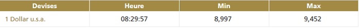 Comme prévu, la Banque centrale a publié ce matin, vers 8h30, la première cotation du dirham. Comme révélé par Médias24, le cours central porte sur la valeur Dirham/Dollar. Ses limites de fluctuation sont à +/- 2,5%. Ci-après la cotation de ce 15 janvier 2018, jour d'entrée en vigueur de la flexibilisation du dirham: