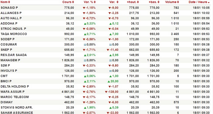 La séance de ce jeudi 18 janvier démarre sur une note négative.