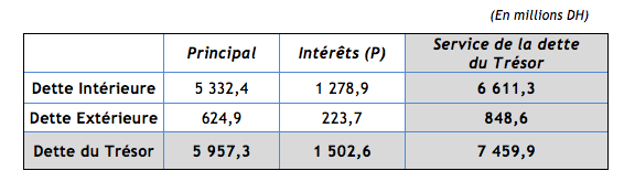 Les remboursements au titre du service de la dette du Trésor, effectués durant le mois de Janvier 2018 se sont élevés à 7,5 milliards de dirhams, détaillés comme suit :