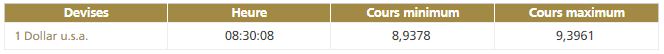 Bank Al-Maghrib (BAM) a publié ce mardi, à 8h30, la première cotation de la journée de la parité USD/MAD: