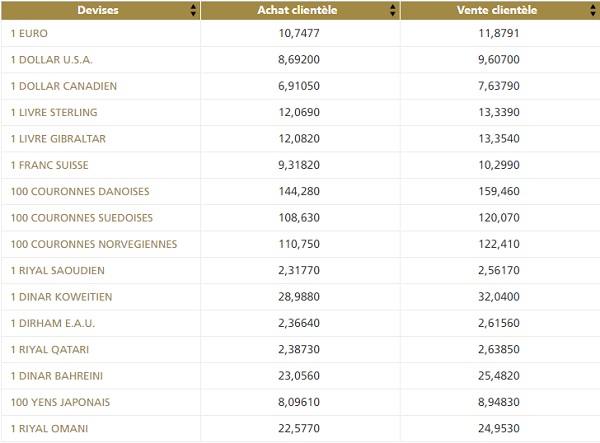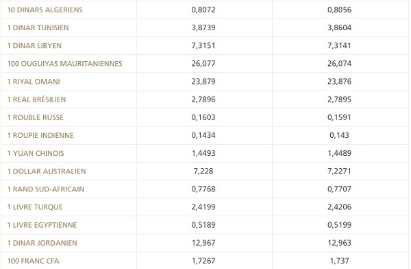 BAM a publié également, pour cette journée, les cours des billets de banque étrangers (BBE) ainsi que les cours de référence. (Voir les tableaux ci-dessous)