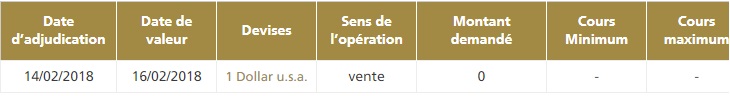 Suite à cette séance d’adjudication, Bank Al-Maghrib (BAM) n’a servi aucun montant en devises.