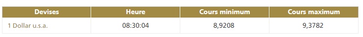 Bank Al-Maghrib (BAM) a publié ce mercredi 14 février, à 8h30, la première cotation de la journée de la parité USD/MAD: