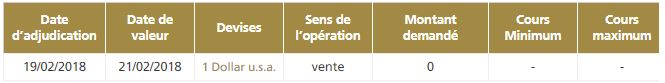 A l’issue de cette séance d’adjudication, Bank Al-Maghrib (BAM) n’a servi aucun montant en devises. (Voir tableau ci-dessous)
