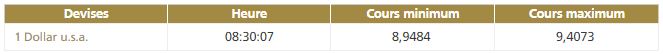 Ce vendredi 23 février, à 8h30, la première cotation centrale USD/MAD de la journée, telle que publiée par Bank Al-Maghrib (BAM), fait ressortir la bande de fluctuation suivante: