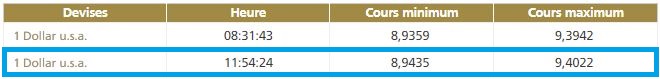 La deuxième cotation centrale USD/MAD, telle que publiée par Bank Al-Maghrib, à 11h50, fait ressortir la bande de fluctuation suivante:
