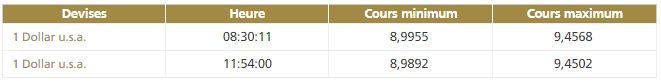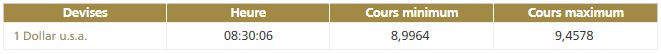 Ce jeudi 1er mars, à 8h30, la première cotation centrale USD/MAD de la journée, telle que publiée par Bank Al-Maghrib (BAM), fait ressortir la bande de fluctuation suivante: