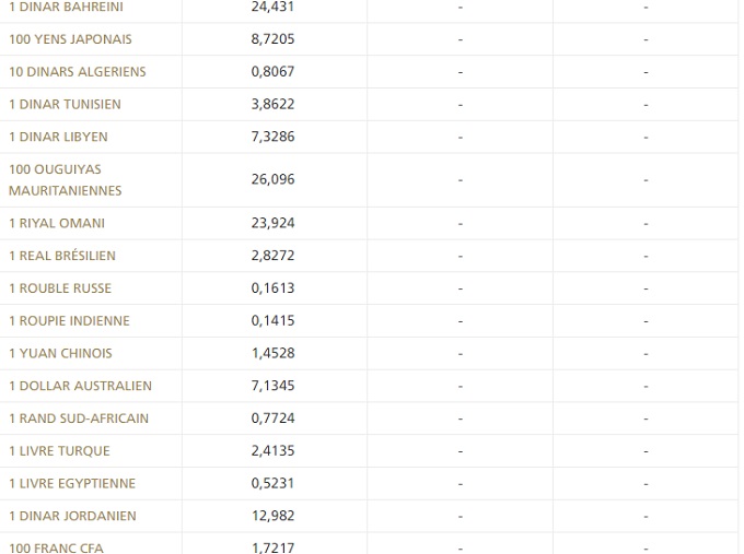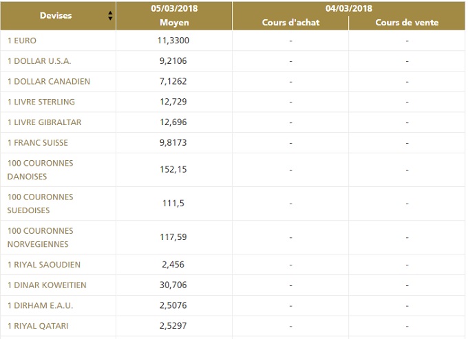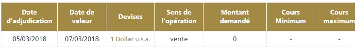 Bank Al-Maghrib n’a servi aucun montant en devises ce lundi 5 mars. (Voir tableau ci-dessous)