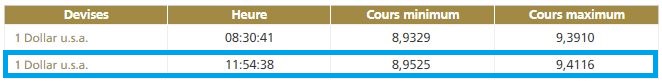 La deuxième cotation centrale USD/MAD, telle que publiée par Bank Al-Maghrib, à 11h50, fait ressortir la bande de fluctuation suivante :