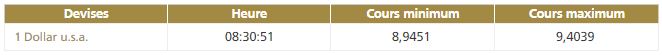 Ce jeudi 29 mars, à 8h30, la première cotation centrale USD/MAD de la journée, telle que publiée par Bank Al-Maghrib (BAM), fait ressortir la bande de fluctuation suivante: