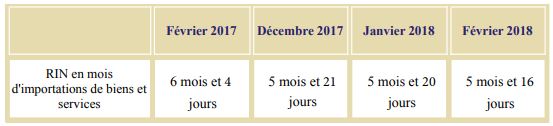 Les RIN en mois d’importations de biens et de services se situent toujours à 5 mois et 16 jours à fin février 2018, contre 6 mois et 4 jours pendant la même période de l’année précédente.