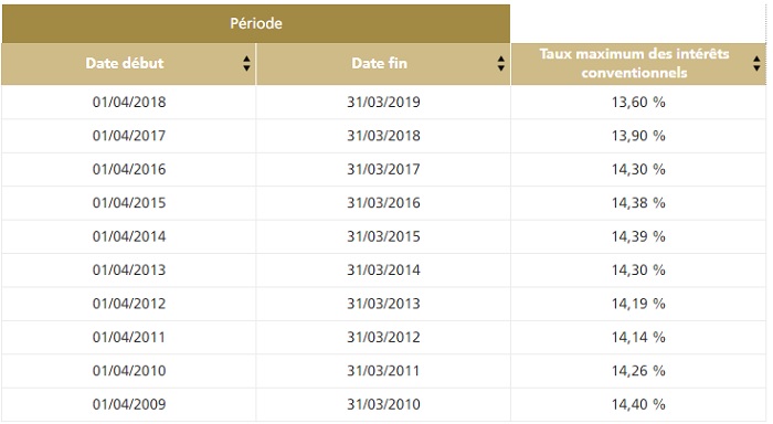Le TMIC est calculé sur la base du Taux d'intérêt moyen pondéré (TMIP) pratiqué par les établissements de crédit sur les crédits à la consommation au cours de l’année civile précédente majoré de 200 points de base.