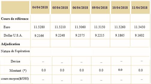 Notons qu’au cours de cette période, aucune opération d’adjudication n’a été réalisée sur le marché de change.