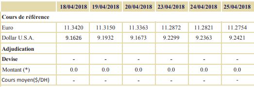 Notons qu’au cours de cette période, aucune opération d’adjudication n’a été réalisée sur le marché des changes.