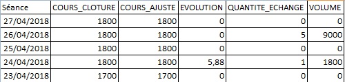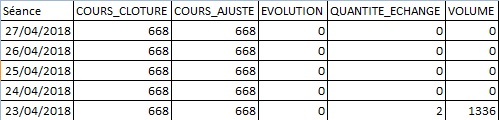 Pour Centrale Danone, qui ne garde que 0,28% de son capital en flottant à la BVC, ce ne sont que 2 titres qui ont été échangés sur la même période, pour un volume global de 1.336 DH. Le cours est resté le même, à 668 DH.