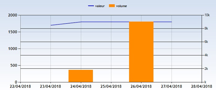 Selon les données de la Bourse des valeurs de Casablanca, ce sont six titres Oulmès seulement qui ont été échangés au cours de la semaine écoulée, pour un petit volume de 10.800 DH. La valeur a également pris 5,88%, pour arriver à un prix de 1.800 DH, et ce suite à l’échange d’un seul titre uniquement.