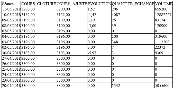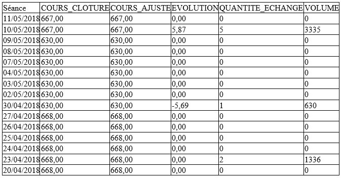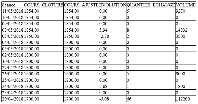 Cela dit, cette croissance n’est pas non plus significative étant donné l’illiquidité de la valeur et la faiblesse du volume de titres échangés sur le marché central (87 actions ont été échangées au total).