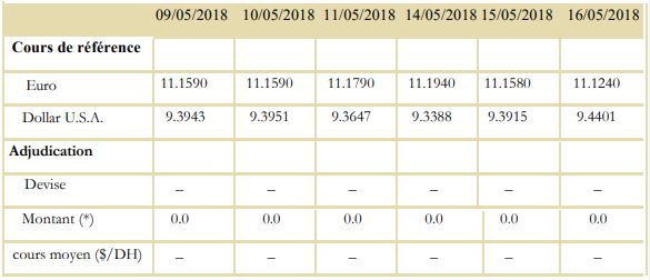 Notons qu’au cours de la période retenue, aucune opération d’adjudication n’a été réalisée sur le marché de change.