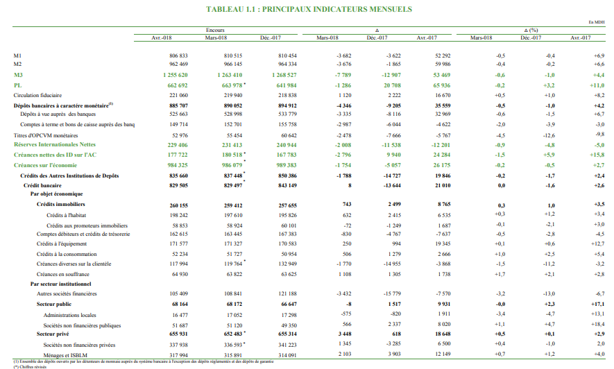 Il convient de noter, par ailleurs, que le niveau des créances en souffrance s’est amélioré en passant de +3% (entre mars 2017 et mars 2018) à 2,8% (entre avril 2017 et avril 2018).