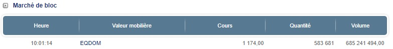 A l’ouverture de la séance de ce vendredi 1er juin, 583.681 titres d’Eqdom ont été échangés sur le marché de blocs, soit près de 35% du capital de la société.