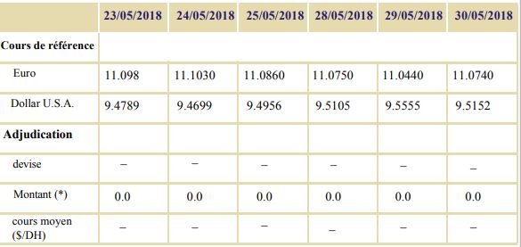 Au cours de cette période, aucune opération d’adjudication n’a été réalisée sur le marché de change. Ainsi, les banques de la place continuent d’assurer la liquidité de ce marché de change sans l’intervention de la banque centrale.