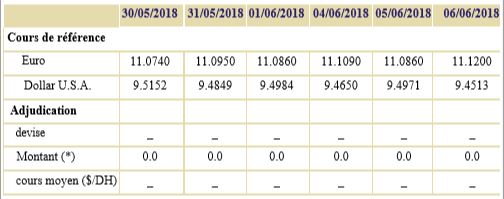Au cours de cette période, aucune opération d’adjudication n’a été réalisée sur le marché de change.