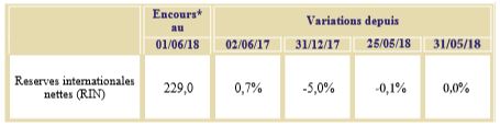 Pour leur part, les réserves internationales nettes (RIN) sont restées quasiment inchangées, d’une semaine à l’autre, pour se situer à 229 milliards de DH au 1er juin 2018.