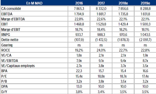 Rappelons que Cosumar a bouclé l’année 2017 sur un RNPG de 988 MDH, en progression de 5,9% sur une année. Le chiffre d’affaires consolidé du groupe s’est établi à 8,33 MMDH, également en progression de 5,9% en glissement annuel, une croissance tirée en particulier par l'augmentation du volume des ventes à l’export du sucre blanc, qui a progressé de 29,2% à 421.000 tonnes en 2017, contre 326.000 tonnes en 2016.