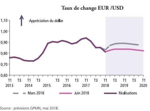 "A moyen terme, et après le récent renforcement du dollar en raison particulièrement d’une modération de l’activité dans la zone euro et des incertitudes politiques dans certains pays de la zone, l’euro devrait se maintenir à un niveau apprécié par rapport au dollar", lit-on sur le rapport.