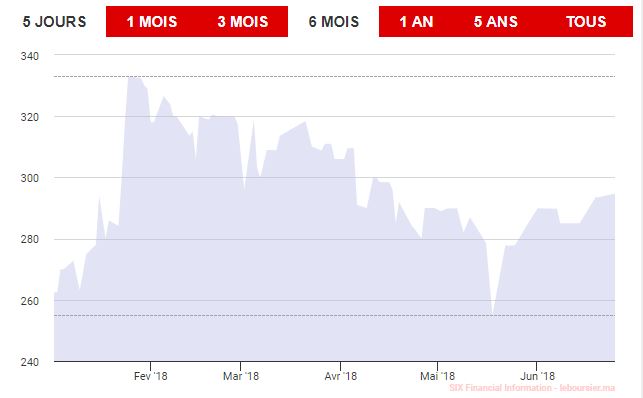 Son cours a d’ailleurs progressé de plus de 12% pour se situer à 294,70 DH à la clôture de la séance du 25 juin 2018.