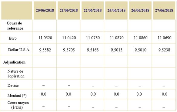 Notons qu’au cours de cette période, aucune opération d’adjudication n’a été réalisée sur le marché de change.