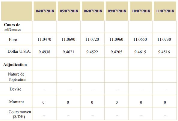 Au cours de cette période, aucune opération d’adjudication n’a été réalisée sur le marché de change.