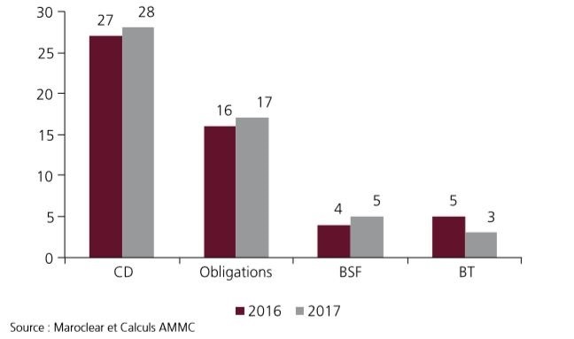 S’agissant du marché de la dette privée, les émissions se sont établies à 53,4 MMDH pour l’année 2017 en hausse de 2,5% par rapport à 2016.