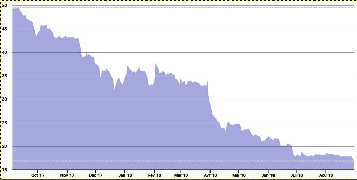 Vendredi 31 août, l'action clôturait à 16,96 DH, son plus bas niveau historique.