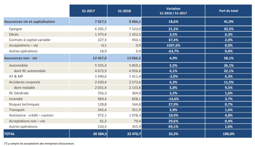 Au titre du premier semestre 2018, les primes émises par les entreprises d’assurances et de réassurance marocaines ressortent à 22,5 MMDH au lieu de 20,4 MMDH un an auparavant, soit une hausse de 10,2%, selon les statistiques de l'Acaps.