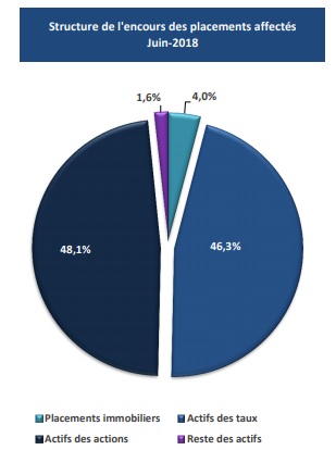 Ci-dessous la structure de l'encours des placements affectés à fin juin 2018:
