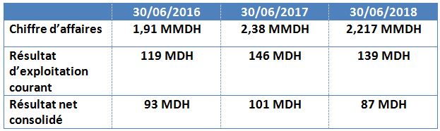 Le chiffre d’affaires s’est établi à 2,15 MMDH au 30 juin 2018, soit un recul de 10% par rapport à 2017, en liaison avec la baisse du coût de la matière première répercutée sur le prix de vente au consommateur et le recul des volumes d’exportation, selon le groupe.