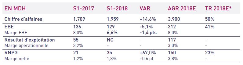 En se basant sur ses résultats du premier semestre 2018, Attijari Global Research (AGR) affirme que le revenu de Sonasid est en ligne avec ses prévisions en 2018, qui anticipent un chiffre d’affaires de 3.900 MDH, soit un taux de réalisation de 50%.