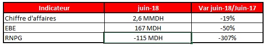 L'entreprise a déjà publié un profit warning pour alerter sur ses résultats semestriels et annuels 2018. Elle a anticipé un déficit de 150 MDH et un chiffre d'affaires en baisse de 20% pour ce premier semestre.