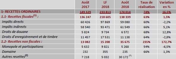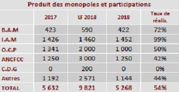 Les recettes de monopoles à fin août 2018 ont été versées notamment par Maroc Télécom, l’Agence de la conservation foncière, OCP, Bank Al-Maghrib, l’ANRT et l’ONDA.