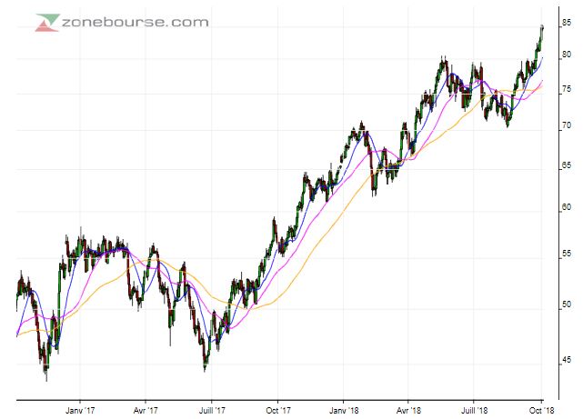 Le Brent a atteint son plus haut niveau depuis 2014, le mardi 2 octobre, en se situant à un cours de 85 dollars le baril, soit une hausse de plus de 80% depuis 2016, année pendant laquelle l’Organisation des pays exportateurs de pétrole (OPEP) a décidé de réduire ses pompages pour stabiliser l’offre mondiale.
