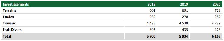Le tableau suivant présente le programme prévisionnel d’investissement du groupe sur la période 2018-2020 :