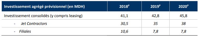 Pour le maintien de son outil de production, Jet Contractors prévoit un programme d’investissement de 130 MDH pour les 3 prochaines années détaillé comme suit :