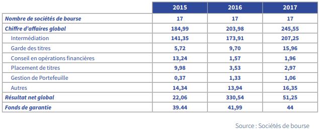 Il convient de noter que l’année 2016 avait été marquée par des résultats d’exploitations négatifs de 12 sociétés de bourse sur 17.