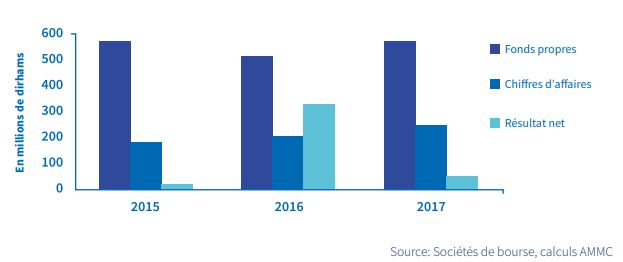 Pendant le même exercice, les sociétés de bourse ont réalisé un chiffre d’affaires total de 245 MDH, enregistrant ainsi une hausse de 20% par rapport à 2016. Cette hausse a contribué à la réalisation d’un résultat d’exploitation positif pour 12 sociétés de bourse sur 17, inversant ainsi la tendance de 2016.