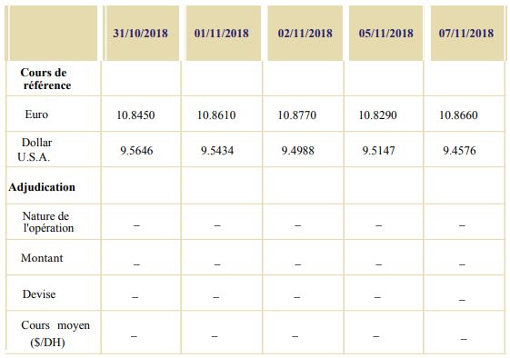 Au cours de cette période, aucune opération d’adjudication n’a été réalisée sur le marché des changes.