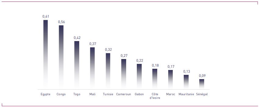 Cette classification fait ressortir l’Egypte, le Congo comme étant les pays dont les économies sont les plus exposées à une variation du prix du pétrole. De l’autre côté, le Sénégal et la Mauritanie apparaissent comme les moins exposés. Le Maroc, pour sa part, ne dégage pas une forte sensibilité par rapport à la variation du prix du pétrole.
