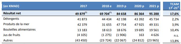 D’après les prévisions de Mutandis, le résultat net consolidé devrait croître en moyenne annuelle de 17,6% sur la période 2017-2021 pour s’établir à 95 MDH en 2021 contre 50 MDH en 2017.